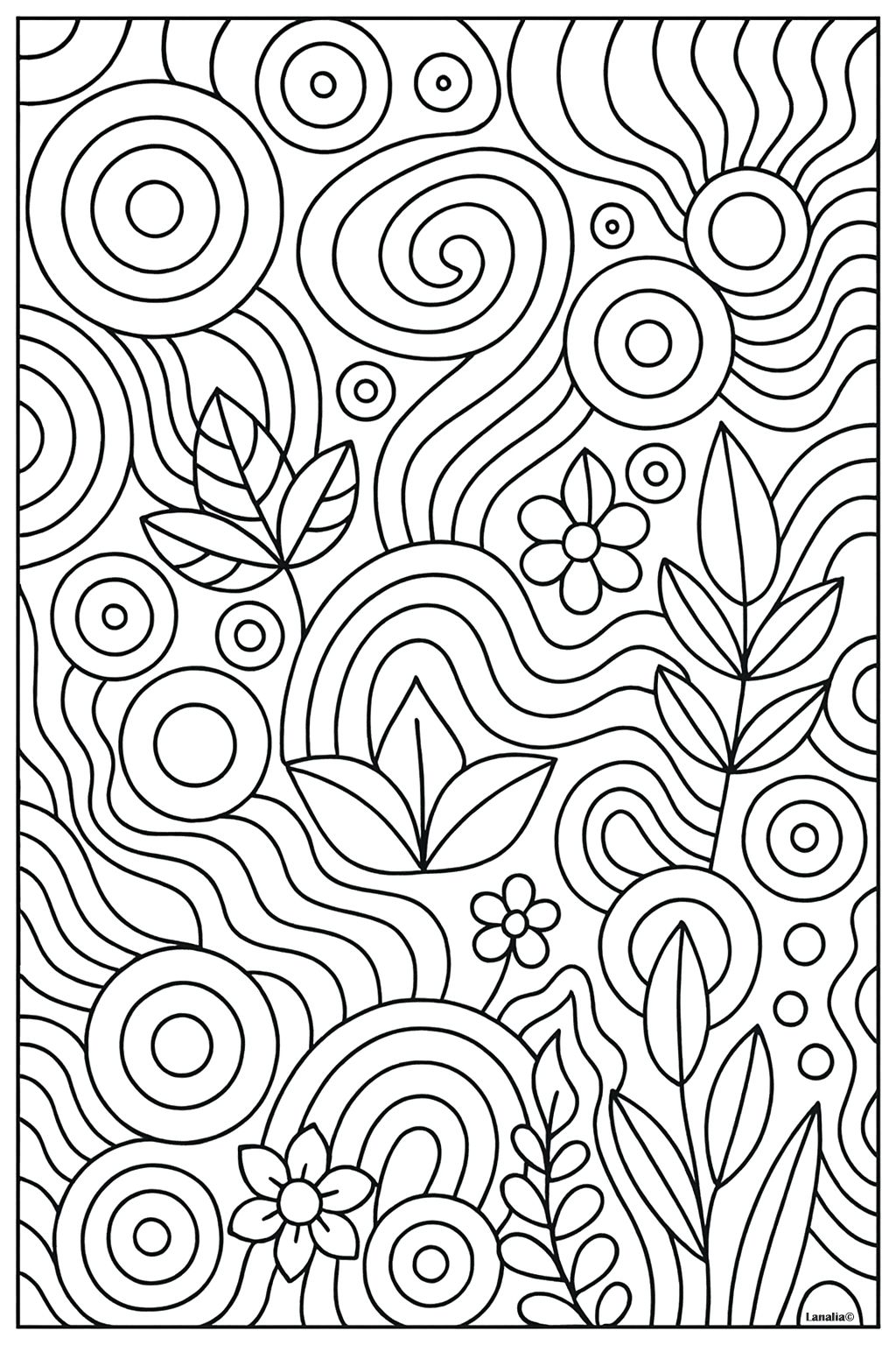 - Ontspannend tekenproces: Je tekent speciale “neurolijnen” en rondt hoeken af, waardoor een vloeiende, verbonden compositie ontstaat. Dit brengt je geest in een staat van flow en ontspanning.